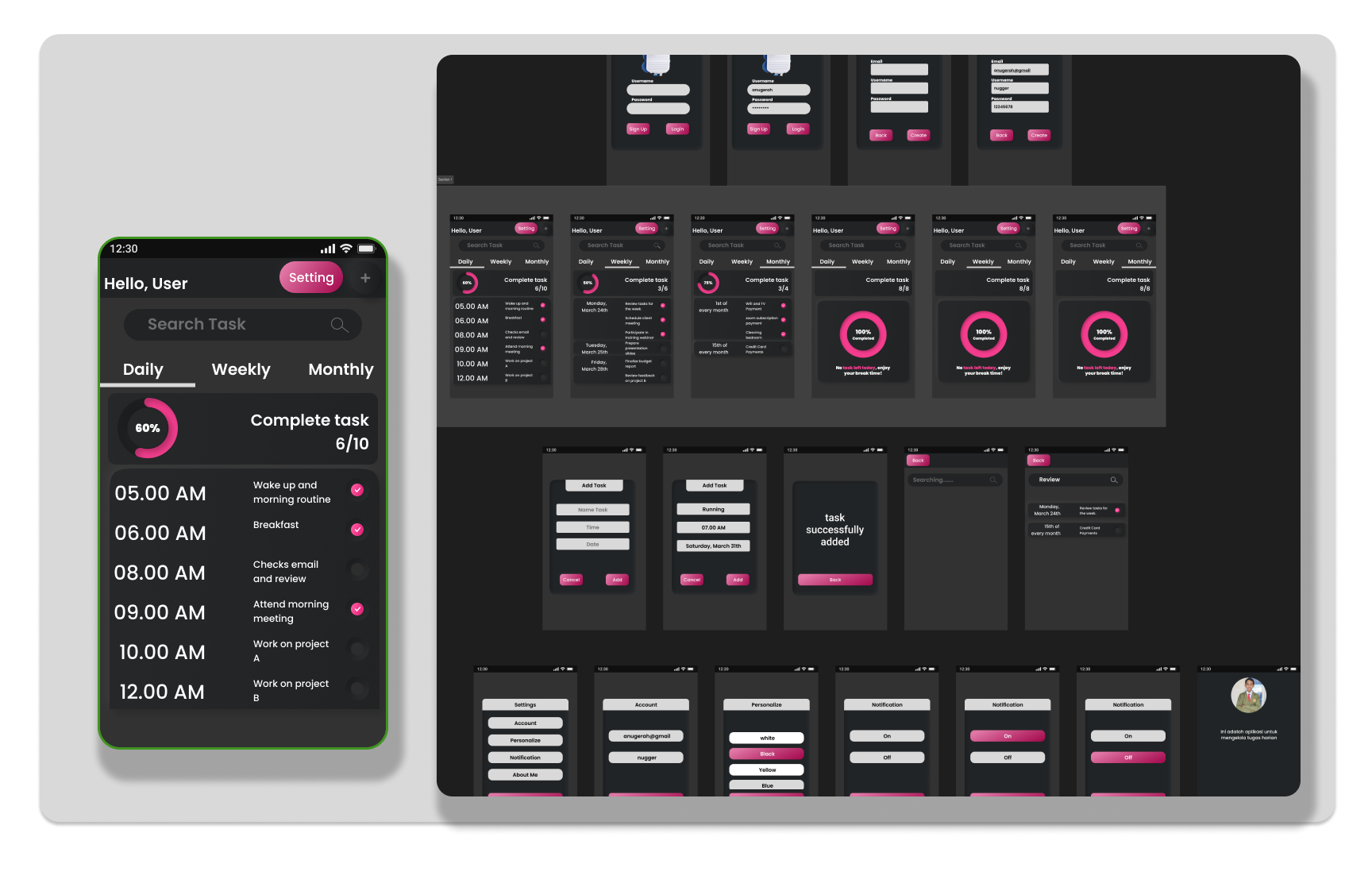 Aplikasi Pengelola Tugas Harian adalah aplikasi yang berguna untuk memanajemen waktu dengan mengingatkan tugas-tugas harian hingga aktivitas-aktivitas. Saya yang membuat desain untuk Aplikasi Pengelola Tugas Harian mulai dari WireFrame, Mockup sampai Prototype dari aplikasi tersebut.
