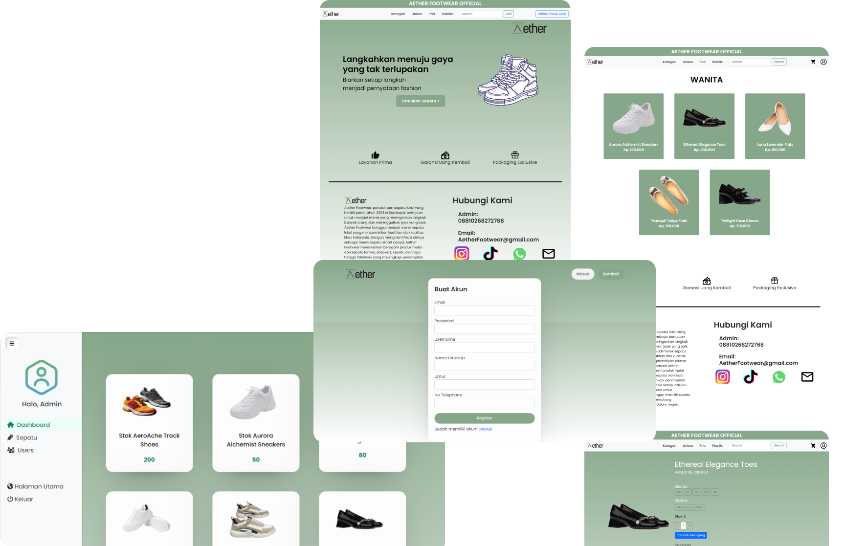 Aether Website Sepatu lokal adalah website yang menyediakan sepatu lokal. Aether Footwear menawarkan beragam produk mulai dari sepatu formal, sneakers, sepatu olahraga hingga flatshoes yang melengkapi penampilan. Saya berkontribusi sebagai Frontend dan Backend