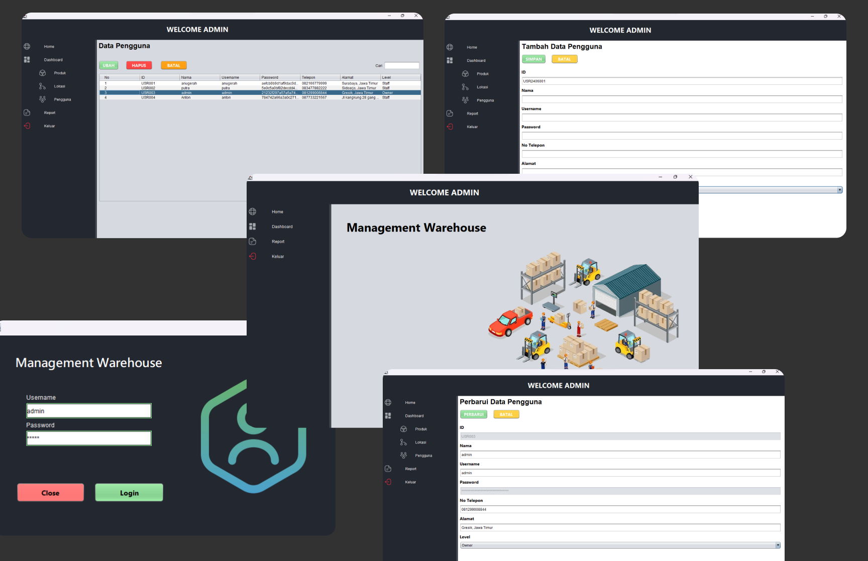 Warehouse Management , adalah perangkat lunak yang dirancang untuk mendukung dan mengoptimalkan operasi gudang dan distribusi. Saya berkontribusi sebagai Frontend dalam pengembangannya